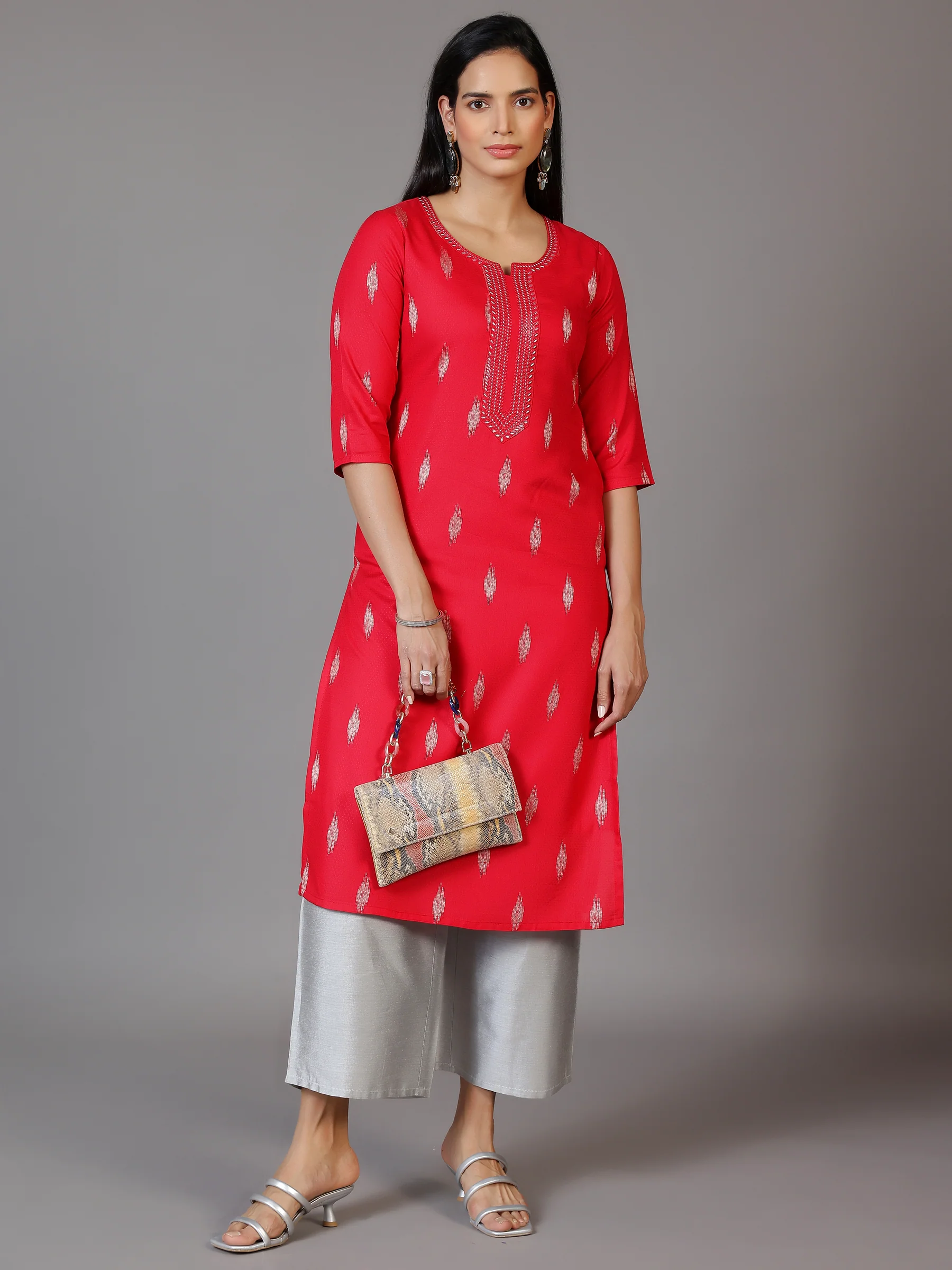 Red Embroidered Chanderi Silk Straight Kurta